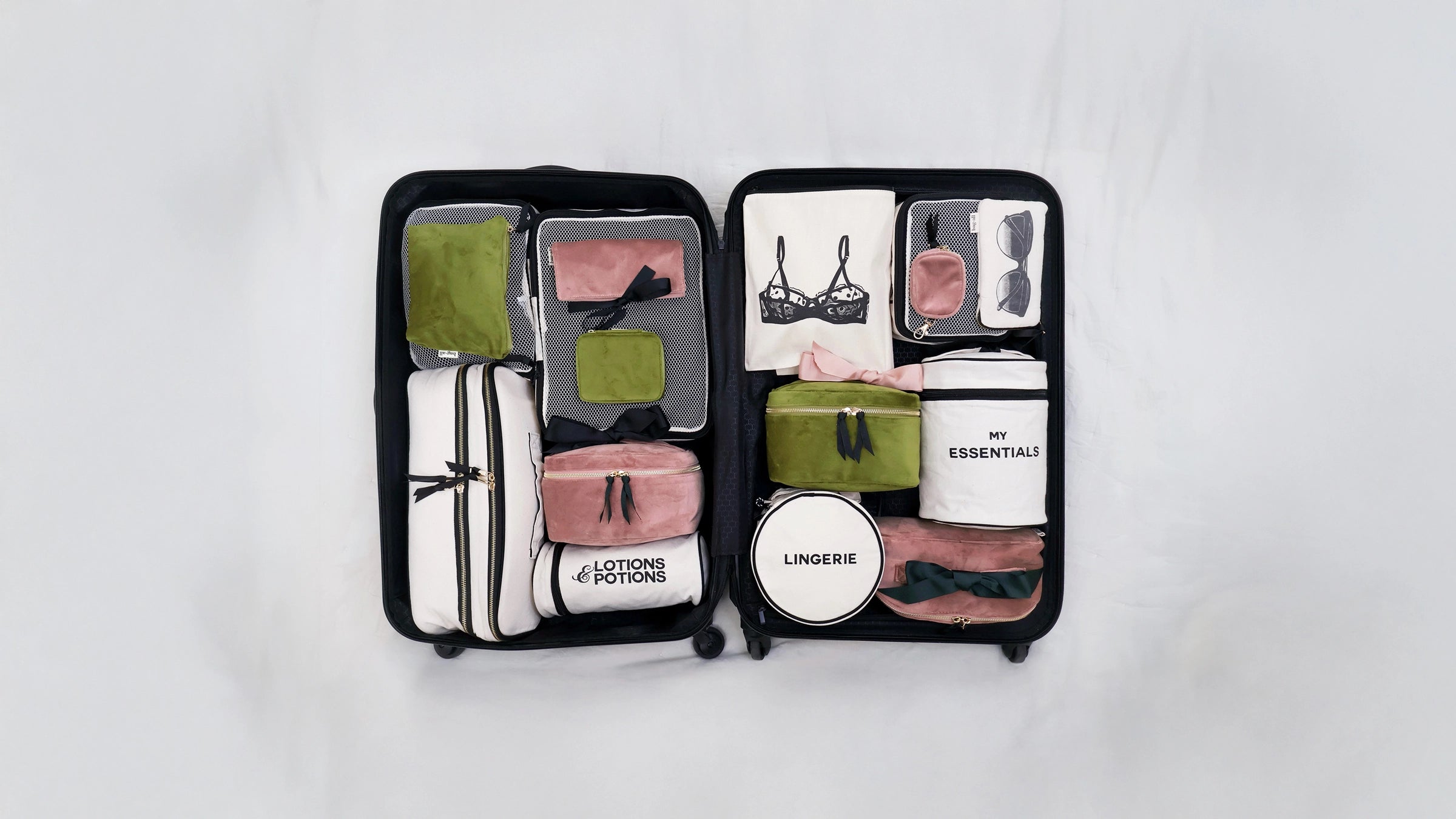 حقيبة سوائل محمولة، زجاجات مرفقة – وردي/زهري