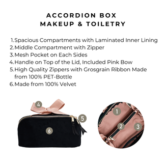 Die Akkordeon-Box fĂŒr Schminke und Toilettenartikel ist ein stilvoller und edler Organizer fĂŒr all Ihre Schmink- und Pflegeutensilien. Ideal fĂŒr den Gebrauch zu Hause oder auf Reisen, verfĂŒgt sie ĂŒber ein hochwertiges Samt- und rosa laminiertes Innenfutter, einen goldfarbenen MetallreiĂverschluss und ein recyceltes Ripsband fĂŒr zusĂ€tzliche Haltbarkeit. Bewahren Sie Ihre...read more