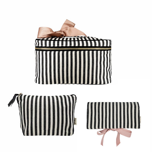 Set de regalo Signature Stripes, paquete de 3 organizadores de viaje, joyería y maquillaje, a rayas