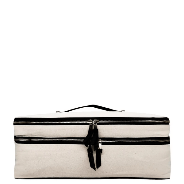 Presentamos el estuche de viaje doble para herramientas para el cabello de Bag-all, ¡perfecto para las herramientas Airwrap! Este estuche de primera calidad garantiza la organización y protección de las herramientas para el cabello durante los desplazamientos. Con un fondo protector del calor, un compartimento superior seguro con gomas elásticas y un bolsillo en la tapa para objetos pequeños, es el compañero de viaje ideal. Personalízala con un bordado para darle un toque personal. Di adiós a los cables enredados y hola a los viajes sin complicaciones con el estuche de viaje doble para herramientas del cabello de bag-all.