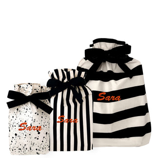 Économisez 9€ sur cet ensemble ! Emballez vos cadeaux avec style grâce à notre ensemble de sacs cadeaux réutilisables ! Cet ensemble est livré avec un sac cadeau Splatter Small, un sac cadeau rayé moyen et un sac cadeau rayé grand. Les sacs cadeaux en tissu peuvent être utilisés des...read more