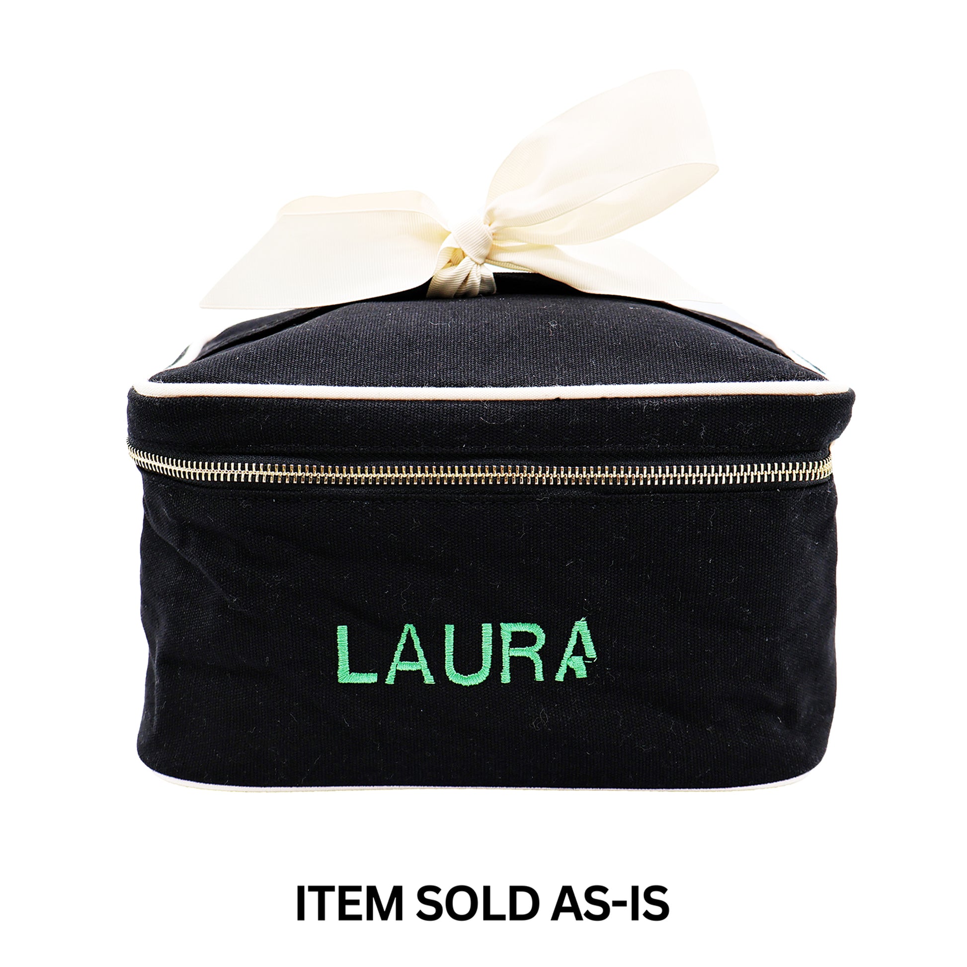 Medium Makeup Case with faulty "LAURA" green monogram, the last part of the "A" has been displaced.