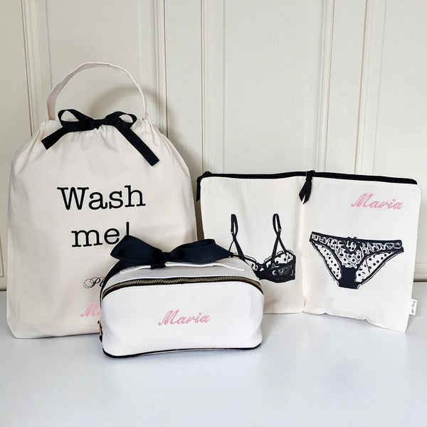 Crafted from durable natural cotton in a chic cream finish, each piece fits perfectly into your suitcase or dresser. Ideal for travel, weekend getaways, or gifting. Add a monogram for a personalized touch!