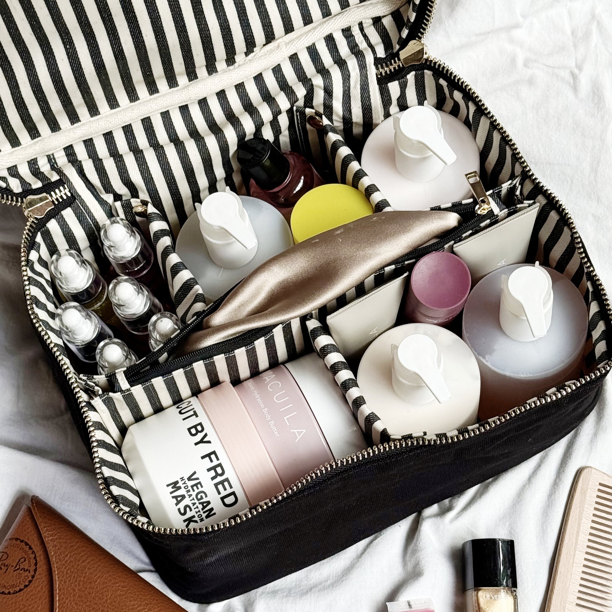 This large vanity beauty case is the perfect companion for keeping your makeup, skincare, and toiletries organized in style. Whether you’re traveling or tidying up your bathroom counter, its spacious design and removable insert compartments make it easy to find exactly what you need—no more digging around! Made from 100%...read more