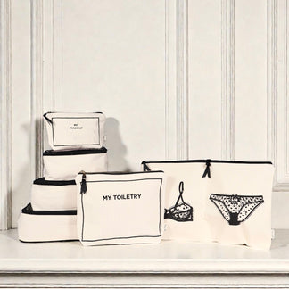 SAVE €22 and level up your next weekend getaway! Our best-selling Weekend Essential Packing Set has everything you need to stay chic and organized - featuring 3 premium Cotton Packing Cubes, a stylish Double Lingerie Pouch, a lined Toiletry Pouch, and a sleek Makeup Pouch.