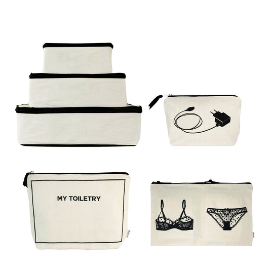 Travel Glam 4-Pack: Organização, Lingerie, Maquiagem e Tecnologia, Preto