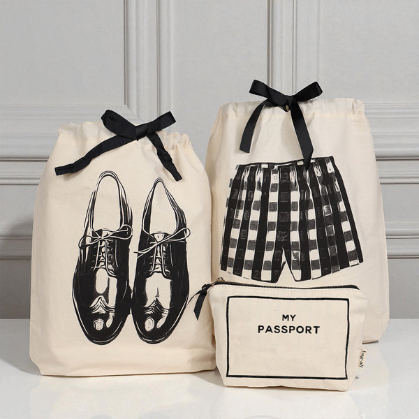 POUPE 9 € e mantenha-se organizado sem esforço. O Conjunto de Presente Para Ele, com 3 Organizadores de Viagem, foi concebido para o transporte diário e essenciais de viagem. Este conjunto prático inclui o Saco para Calçado Masculino para manter o calçado separado, o Saco para Boxers para facilitar a arrumação e a separação da roupa suja, e a Bolsa para Passaporte para guardar cuidadosamente o passaporte ou pequenos documentos.