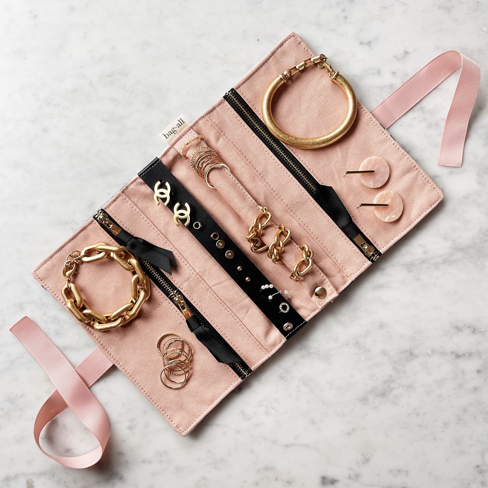 Perfekt för resor, weekendresor eller för att lyfta din sminkhörna, varje del håller dina nödvändigheter separerade, skyddade och lätta att komma åt. Lägg till en monogram för en personlig touch.
